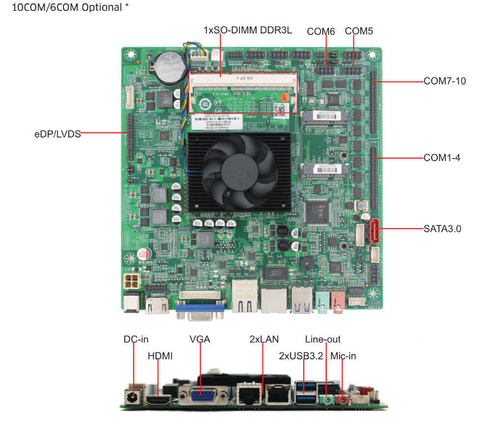 丰富接口设计:10xCOM(6xCOM可选)、2xLAN、2xUSB3.2和6xUSB2.0等接口一应俱全,轻松连接各类外设和网络设备。